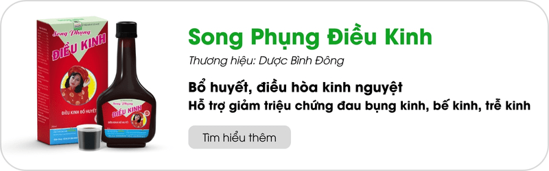 Nếu bạn muốn một giải pháp sẵn sàng, không mất thời gian pha chế, hãy thử Song Phụng Điều Kinh Bình Đông – trà túi lọc từ Dược Bình Đông, kết tinh các thảo dược quý như ngải cứu, quế, gừng và thì là. Sản phẩm được bào chế theo công thức cổ truyền, giúp giảm đau bụng kinh dữ dội, điều hòa kinh nguyệt an toàn mà không hóa chất. Chỉ cần ngâm túi lọc vào nước ấm 3-5 phút là có ngay ly trà thơm ngon, tiện lợi cho lối sống hiện đại.